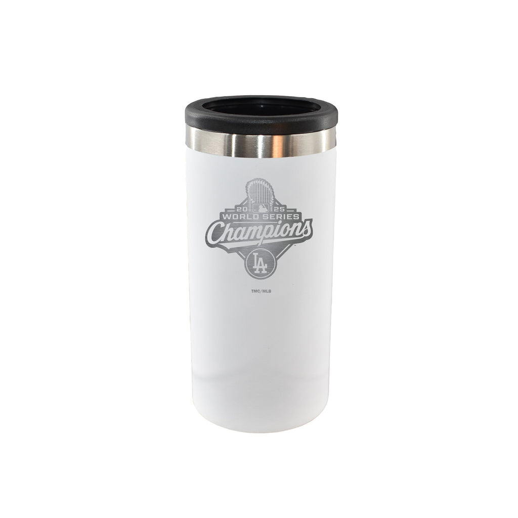 12oz White Stainless Steel Slim Can Holder, MLB World Series Champs 2025, Etched, Los Angeles Dodgers