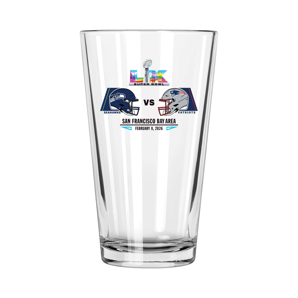 16oz Pint Glass, Direct Print, Patriots vs. Seahawks, Super Bowl 60, Dueling, 2026