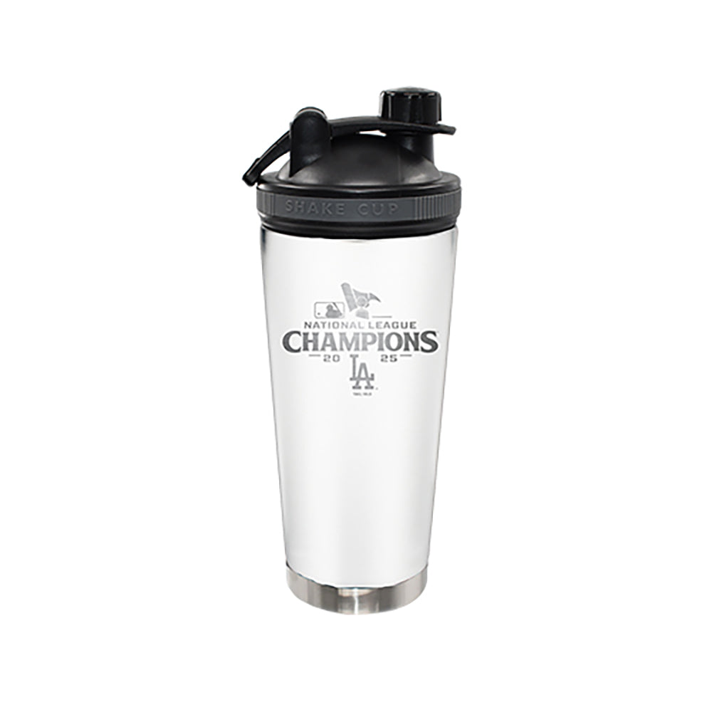 24oz White Stainless Steel Beverage Shaker Bottle, MLB National League Champs 2025, Etched, Los Angeles Dodgers