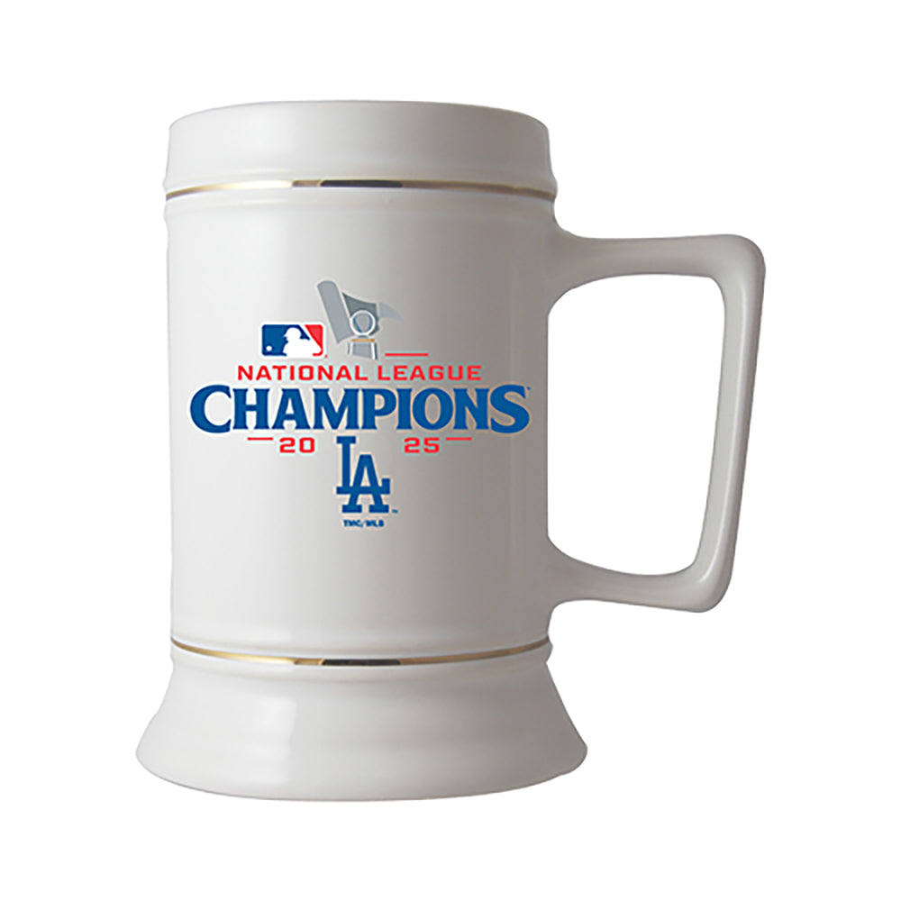 28oz White Ceramic Stein, MLB National League Champs 2025, Sublimation, Los Angeles Dodgers