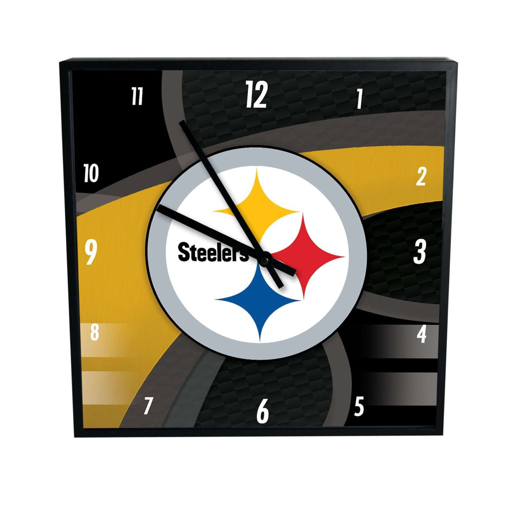 12 Inch Square Carbon Fiber Clock | Pittsburgh Steelers