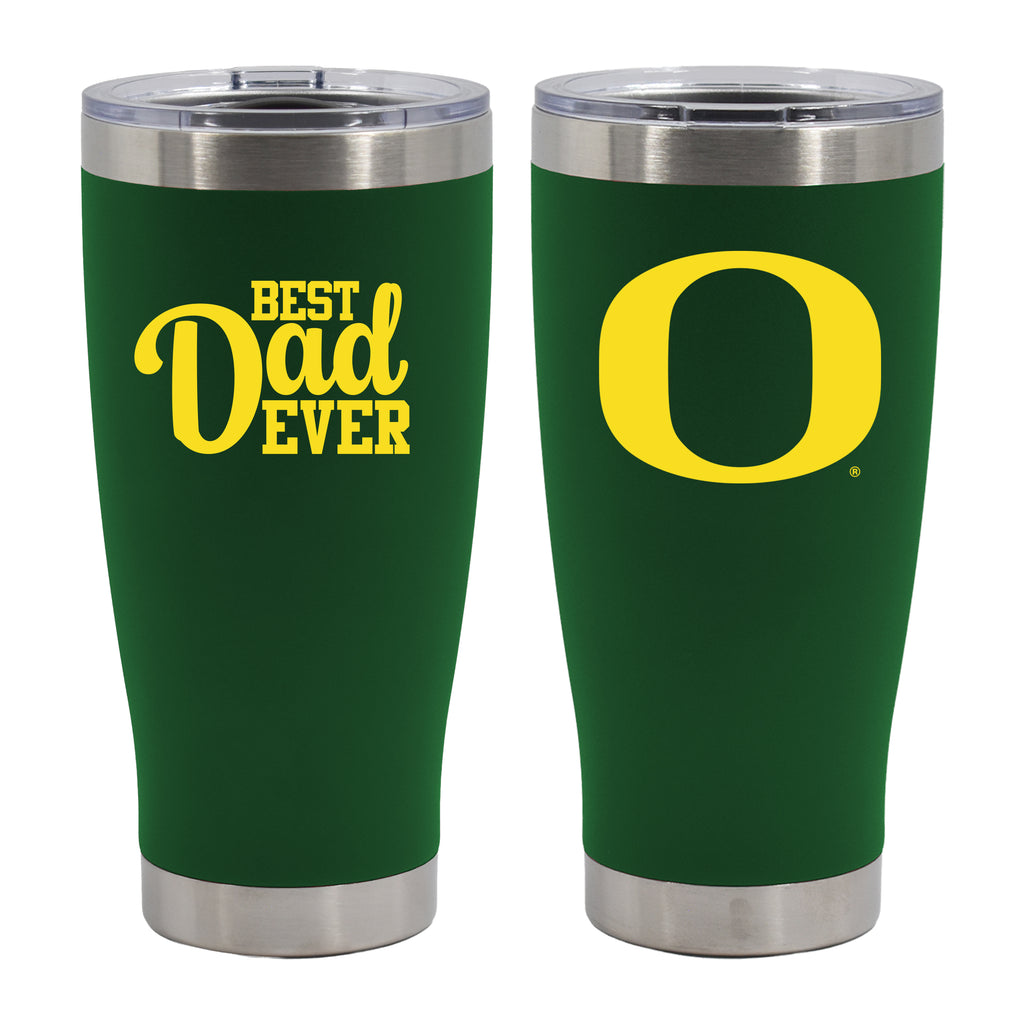 20oz Green Stainless Steel Tumbler, Direct Print, Best Dad Ever Design, University of Oregon